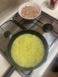 Cortamos la cebolla en trozos pequeños y la sofreímos.