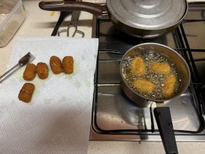Freímos en abudante aceite de oliva a 180º. Hasta que queden bien fritas.